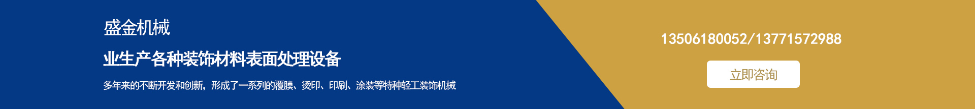 盛金機(jī)械專業(yè)生產(chǎn)各種裝飾材料表面處理設(shè)備 集多年來(lái)的不斷開發(fā)和創(chuàng)新,形成了一系列的覆膜、燙印、印刷、涂裝等特種輕工裝飾機(jī)械。并敢于和善于開發(fā)用戶急需的特殊要求機(jī)械設(shè)備。